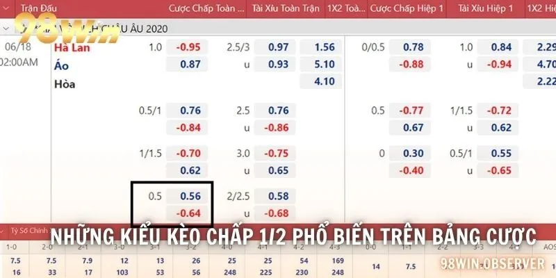 Các biến thể kèo 1/2 là gì phổ biến trên bảng cược